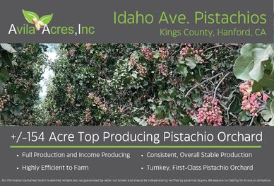Property Information: 154 +/- Acres Pistachios. Full Production and Income Producing! Turnkey, First-Class Pistachio Orchard and Consistent, Overall Stable Production.